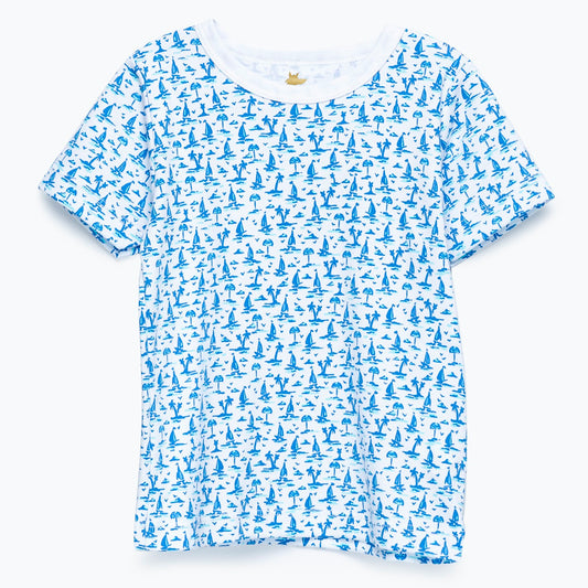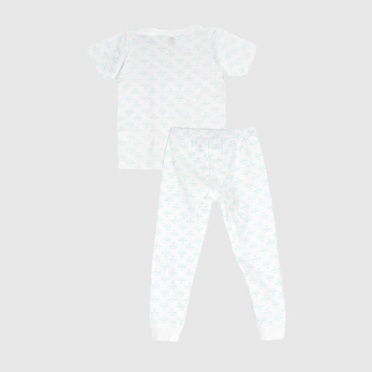 Pijama blanco barcos turquesa algodón peruano
