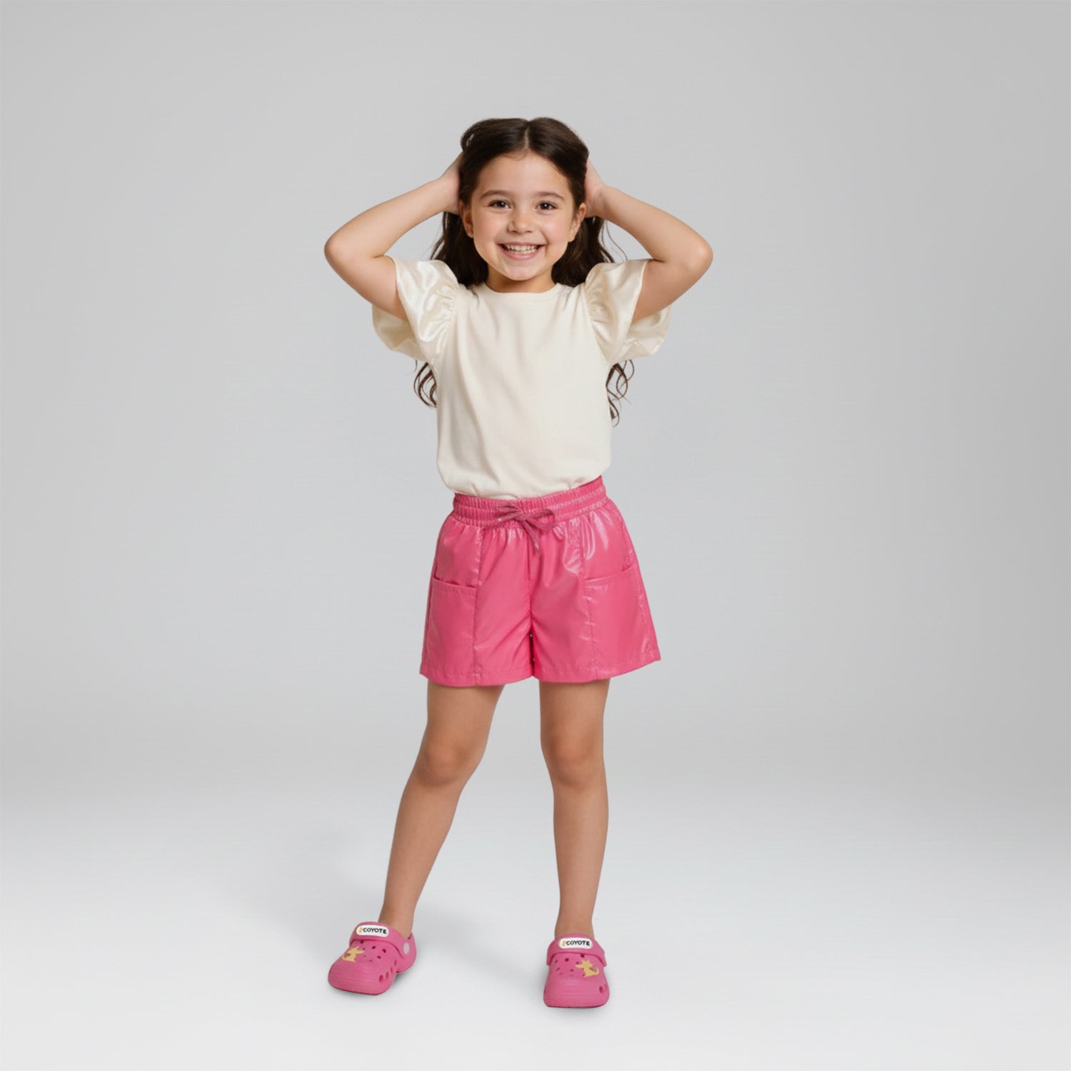 Short rosado metálico para niña